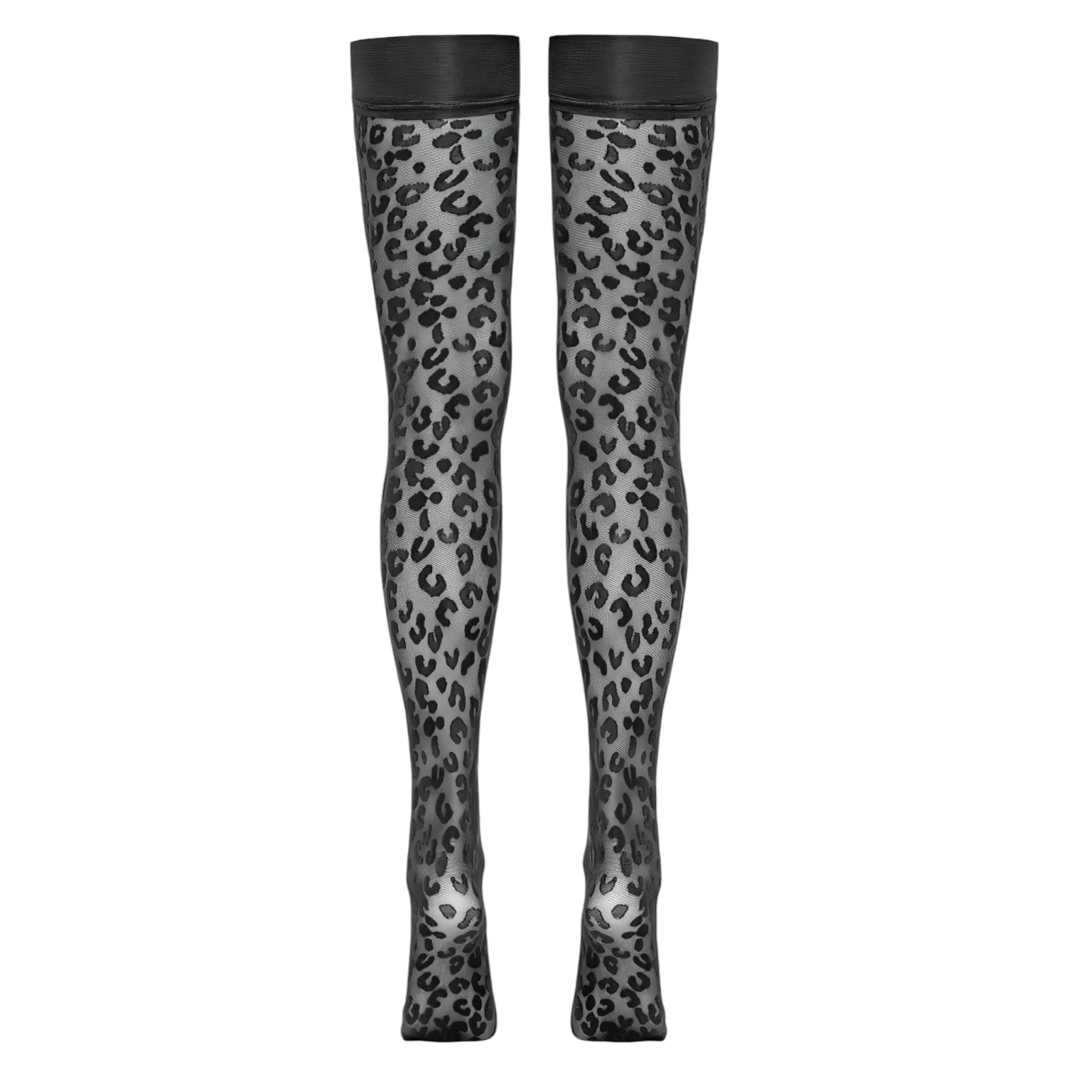 Cottelli - Lårhöga strumpor, leopardmönster (svart)