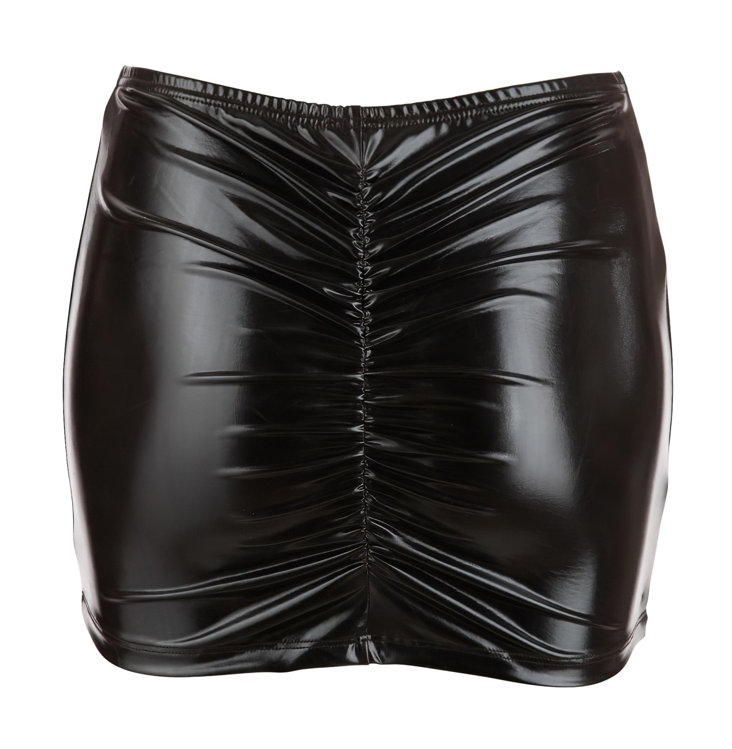 Den här kaxiga minikjolen i svart, glansigt material framhäver alla dina kurvor på bästa sätt!