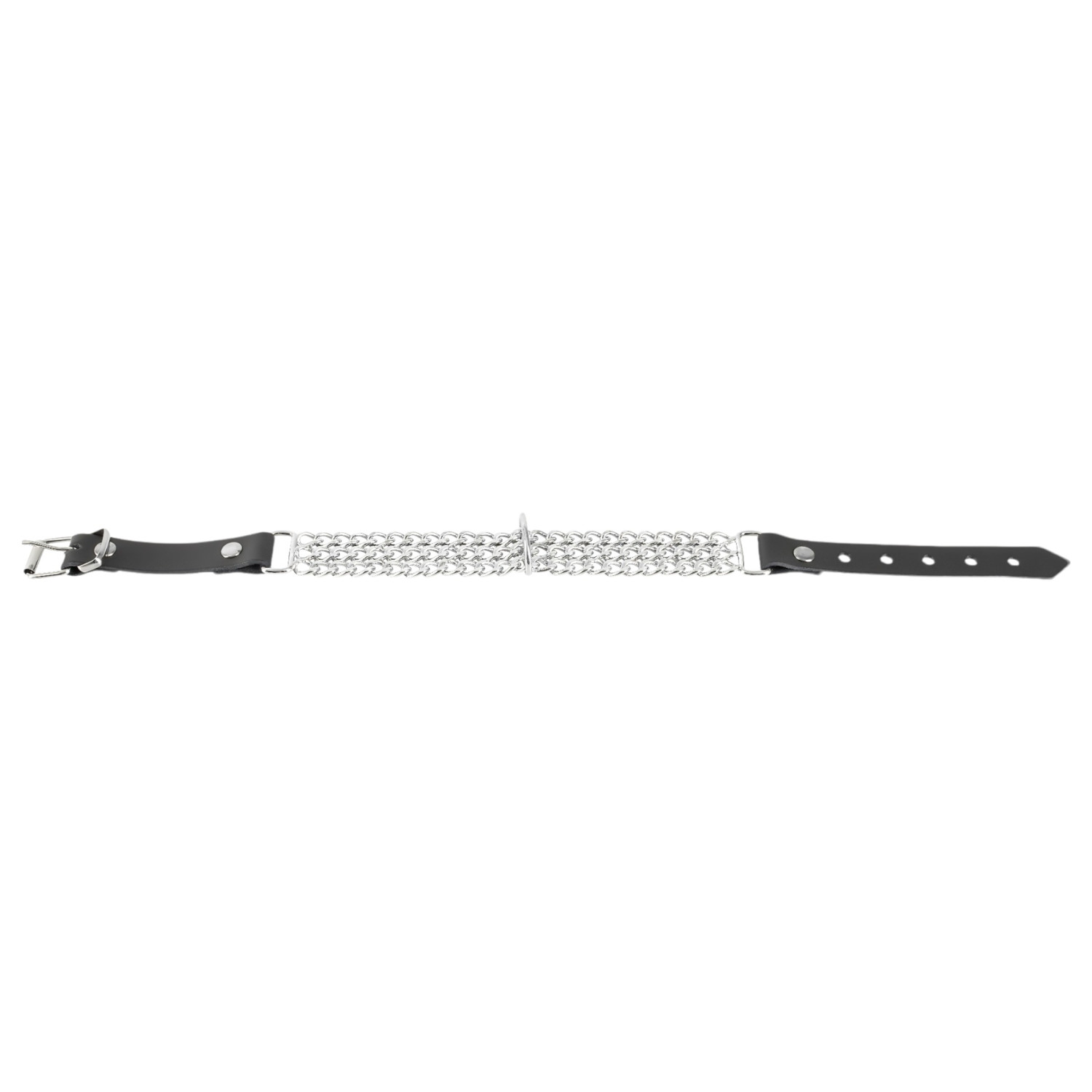 Upplev dominans och kontroll med det här högkvalitativa halsbandet med tre rader metallkedjor.